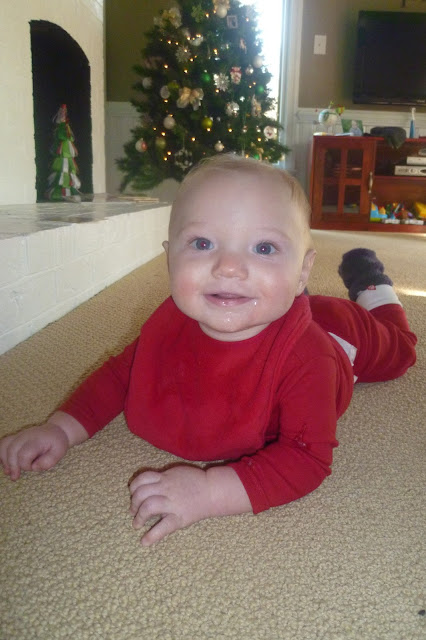 ~ Ethan is fast. He started army crawling at 7 months and full blown crawling by 8 months. He's now gone vertical. Pulling up on e.v.e.r.y.t.h.i.n.g. Crawling up and into the fireplace. Yup. And we can't contain him. We can't gate him anywhere because if we gated anything we would be gating Ryan in or out as well. So, for now, one eye must always be on Ethan!
